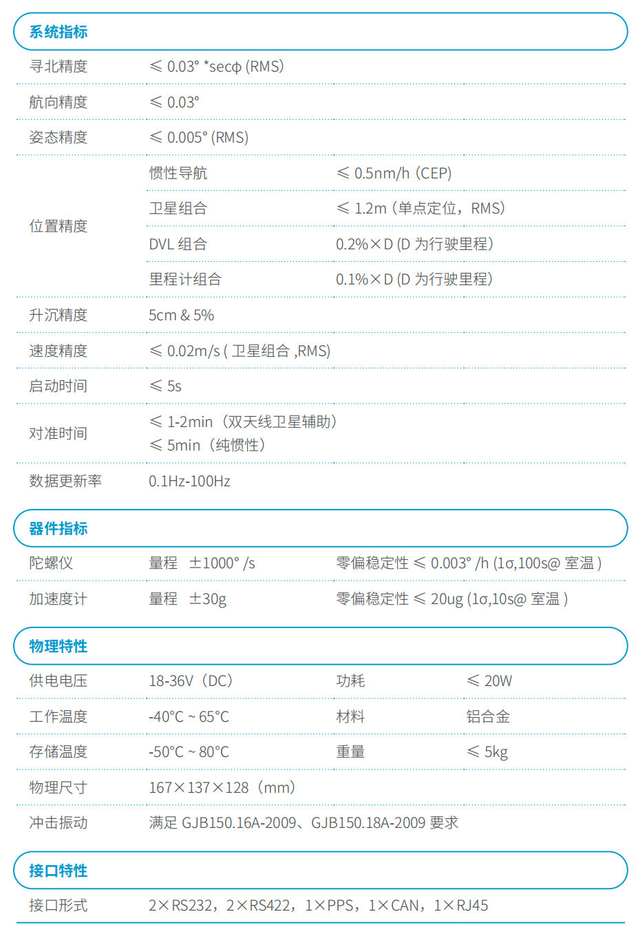 自尋北: 0.05°,姿態:0.01°,導航: 0.8 nm / h
